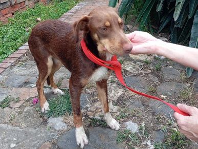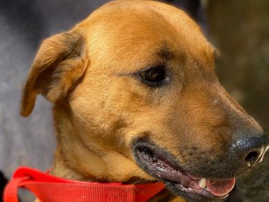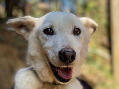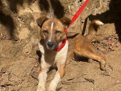 Rescued as a puppy with an injured leg. He limps a bit but is full of life.